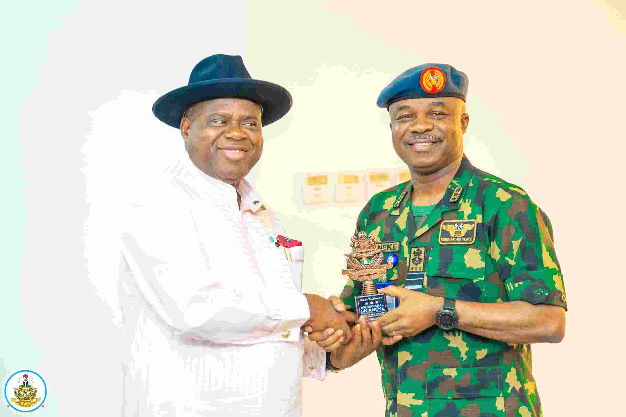 During a courtesy call on Bayelsa State Governor, Senator Douye Diri, Air Marshal Aneke emphasized the importance of sustained civil–military cooperation in safeguarding the Niger Delta. “Bayelsa State occupies a strategic place within Nigeria’s security and economic architecture. The Nigerian Air Force remains committed to working closely with the Bayelsa State Government and other stakeholders to ensure the protection of lives, critical national assets and sustained peace across the Niger Delta,” he stated.